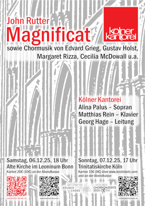 Weitere Informationen zu dem Konzert am So, 07.12.2025 um 17 Uhr in Köln, Trinitatiskirche finden Sie hier. Tickets können unter kvstickets.com erworben werden.
